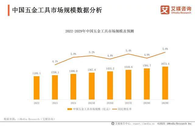 当前,全球机电五金行业正派历着深刻的变化取转型,智能化、绿色化、国际化已成为行业成长的焦点趋向。中国五金东西市场的快速增加,得益于国内经济的持续成长以及制制业的不竭升级。iiMedia Research(艾媒征询)数据显示,2024年中国五金东西市场规模为1300亿元,同比增加5。0%;估计到2029年无望超1600亿元。